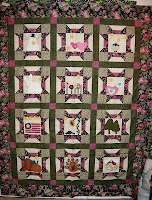 Today I got a client quilt finished. It took me most of the day so I didn't get to any of my sewing. I also loaded the next quilt on to be done. (I must confess-----while getting dinner ready I played a little with my treadle. I finished my first string pieced block on it. YAY!!!!).